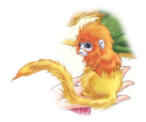 ↓金糸猴(キンシコウ)という実在のお猿さんをモデルにした、創作手乗りお猿です。